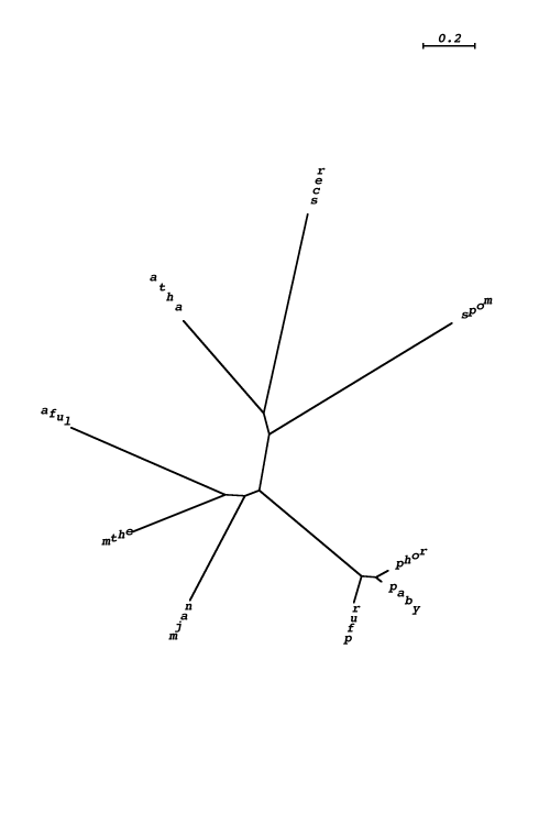 aaeo : A. aeolicum;  aful : A. fulgidus;  aper : A. pernix;  atha : A. thaliana;  calb : C. albicans;  cele : C. elegans;  csym : C. symbiosum;  ddis : D. discoideum;  dmel : D. melanogaster;  enid : E. nidulens;  gmax : G. max;  hhal : H. halobium;  hmar : H. marismortui;  hsap : H. sapiens;  lesc : L. esculentum;  lmaj : L. major;  maur : M. auratus;  mjan : M. jannashii;  mmus : M. musculus;  mthe : M. thermoautotrophicum;  mthl : M. thermoautolithotrophicum;  ncra : N. crassa;  nloc : N. locustae;  paby : P. abyssi;  parm : P. armeniaca ;  pfal : P. falciparum;  pfur : P. furiosus;  phor : P. horikoshii;  scer : S. cerevisiae;  spom : S. pombe;  ssol : S. solfataricus;  taci : T. acidophilum;  tmar : T. maritima