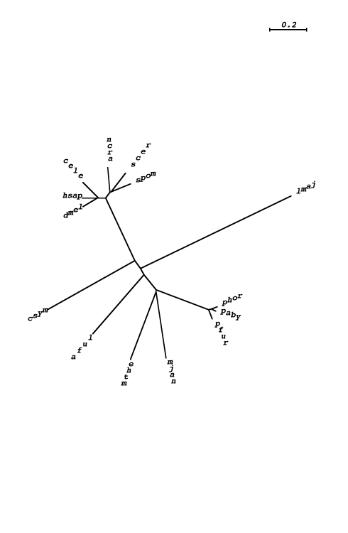aaeo : A. aeolicum;  aful : A. fulgidus;  aper : A. pernix;  atha : A. thaliana;  calb : C. albicans;  cele : C. elegans;  csym : C. symbiosum;  ddis : D. discoideum;  dmel : D. melanogaster;  enid : E. nidulens;  gmax : G. max;  hhal : H. halobium;  hmar : H. marismortui;  hsap : H. sapiens;  lesc : L. esculentum;  lmaj : L. major;  maur : M. auratus;  mjan : M. jannashii;  mmus : M. musculus;  mthe : M. thermoautotrophicum;  mthl : M. thermoautolithotrophicum;  ncra : N. crassa;  nloc : N. locustae;  paby : P. abyssi;  parm : P. armeniaca ;  pfal : P. falciparum;  pfur : P. furiosus;  phor : P. horikoshii;  scer : S. cerevisiae;  spom : S. pombe;  ssol : S. solfataricus;  taci : T. acidophilum;  tmar : T. maritima