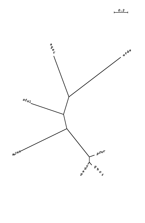 aaeo : A. aeolicum;  aful : A. fulgidus;  aper : A. pernix;  atha : A. thaliana;  calb : C. albicans;  cele : C. elegans;  csym : C. symbiosum;  ddis : D. discoideum;  dmel : D. melanogaster;  enid : E. nidulens;  gmax : G. max;  hhal : H. halobium;  hmar : H. marismortui;  hsap : H. sapiens;  lesc : L. esculentum;  lmaj : L. major;  maur : M. auratus;  mjan : M. jannashii;  mmus : M. musculus;  mthe : M. thermoautotrophicum;  mthl : M. thermoautolithotrophicum;  ncra : N. crassa;  nloc : N. locustae;  paby : P. abyssi;  parm : P. armeniaca ;  pfal : P. falciparum;  pfur : P. furiosus;  phor : P. horikoshii;  scer : S. cerevisiae;  spom : S. pombe;  ssol : S. solfataricus;  taci : T. acidophilum;  tmar : T. maritima