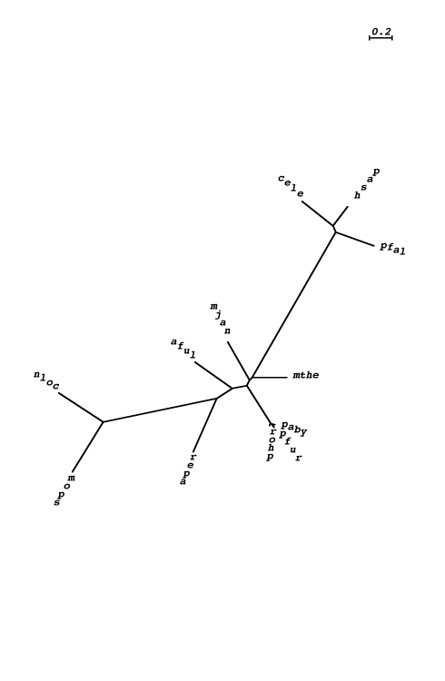 aaeo : A. aeolicum;  aful : A. fulgidus;  aper : A. pernix;  atha : A. thaliana;  calb : C. albicans;  cele : C. elegans;  csym : C. symbiosum;  ddis : D. discoideum;  dmel : D. melanogaster;  enid : E. nidulens;  gmax : G. max;  hhal : H. halobium;  hmar : H. marismortui;  hsap : H. sapiens;  lesc : L. esculentum;  lmaj : L. major;  maur : M. auratus;  mjan : M. jannashii;  mmus : M. musculus;  mthe : M. thermoautotrophicum;  mthl : M. thermoautolithotrophicum;  ncra : N. crassa;  nloc : N. locustae;  paby : P. abyssi;  parm : P. armeniaca ;  pfal : P. falciparum;  pfur : P. furiosus;  phor : P. horikoshii;  scer : S. cerevisiae;  spom : S. pombe;  ssol : S. solfataricus;  taci : T. acidophilum;  tmar : T. maritima